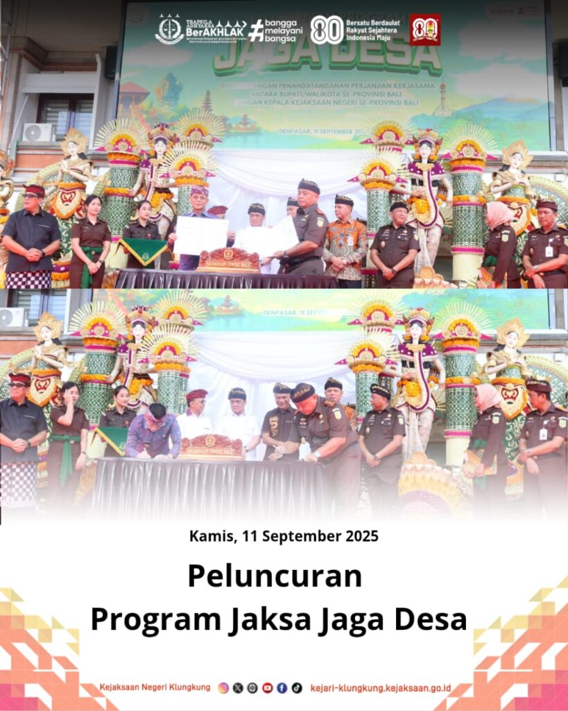 Kepala Kejaksaan Negeri Klungkung, I Wayan Suardi, S.H., M.H., bersama Bupati Klungkung dan jajaran menghadiri peluncuran Program Jaksa Jaga Desa.