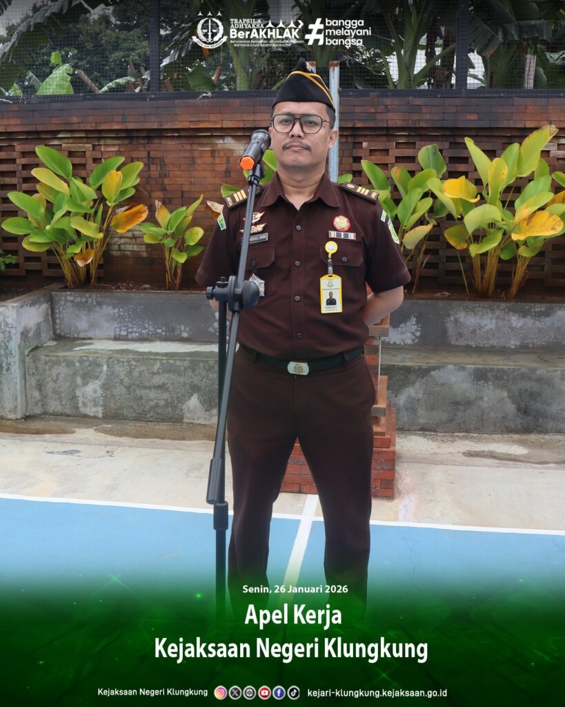 Senin, 26 Januari 2026 bertempat di Lapangan Kejaksaan Negeri Klungkung seluruh Pegawai dan PPNPN Kejaksaan Negeri Klungkung telah melaksanakan Apel Kerja yang diterima oleh Kepala Seksi Pemulihan Aset, dan Pengelolaan Barang Bukti serta Barang Rampasan, Mustabihul Amri, S.H.