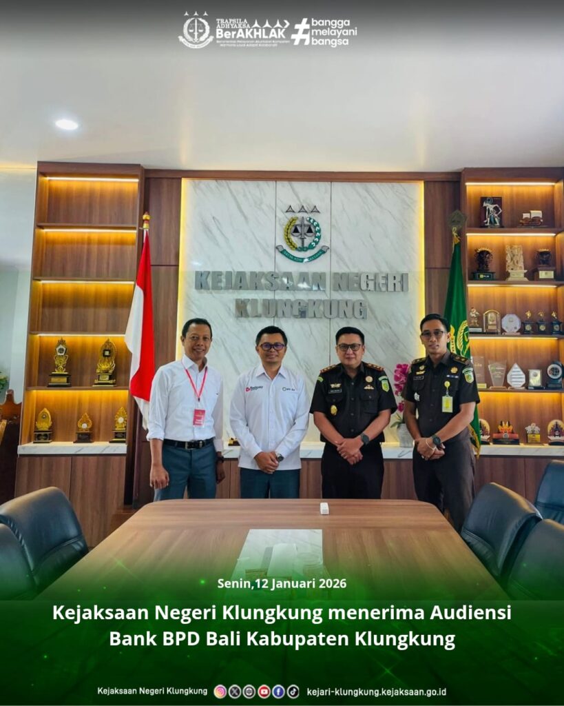 Audiensi tersebut dilaksanakan sebagai upaya memperkuat koordinasi dan sinergi antara Kejaksaan Negeri Klungkung dengan Bank BPD Bali Kabupaten Klungkung, khususnya dalam rangka mendukung pelaksanaan tugas dan fungsi di bidang Perdata dan Tata Usaha Negara, serta peningkatan tata kelola dan pelayanan kepada masyarakat