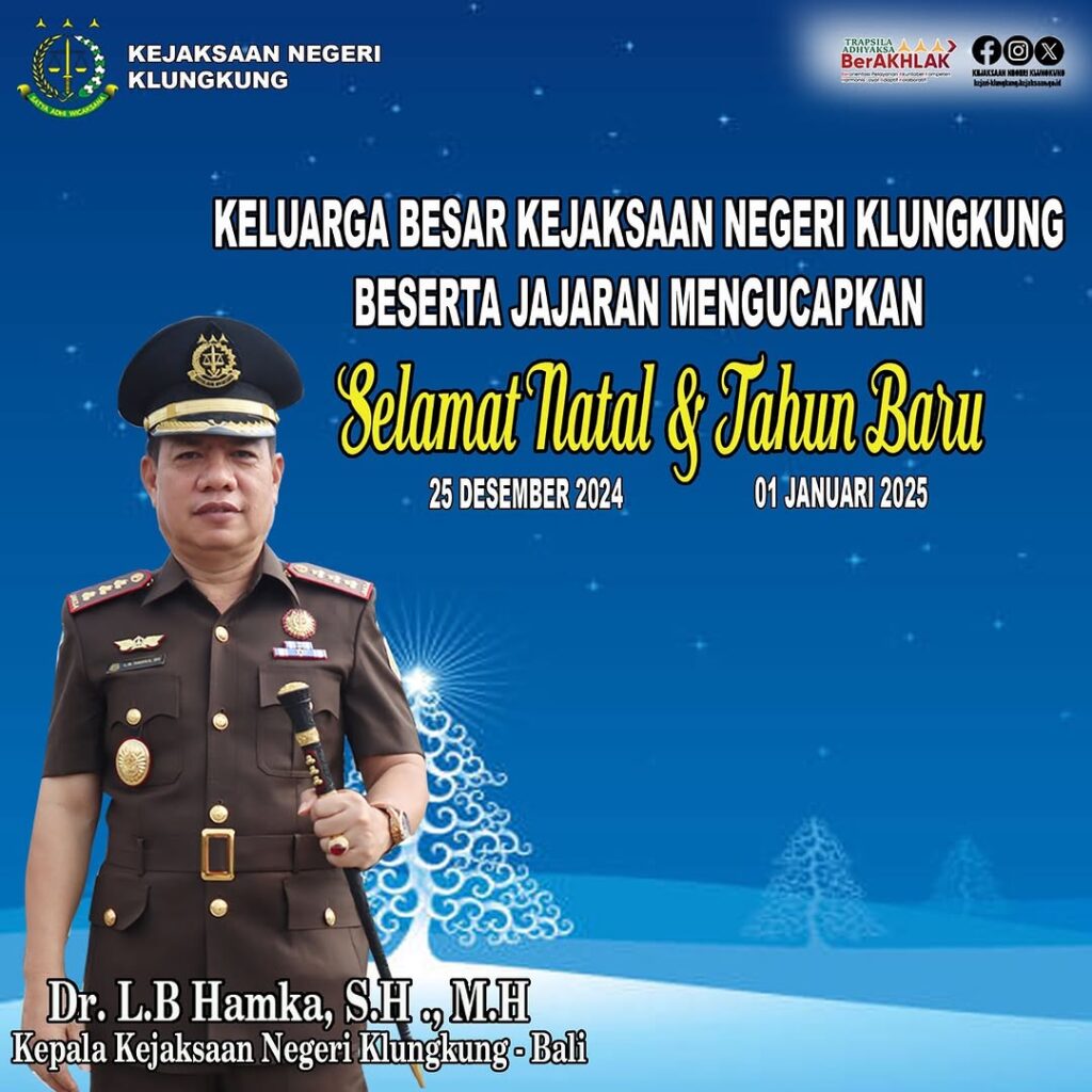 Kepala Kejaksaan Negeri Klungkung, Dr. L. B. Hamka, S.H., M.H., beserta segenap Keluarga Besar Kejaksaan Negeri Klungkung mengucapkan Selamat Hari