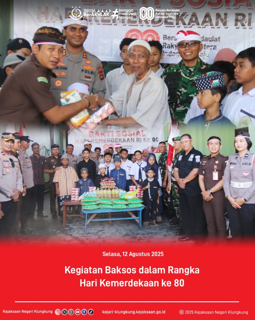 Kasi Pidum Kejari Klungkung I D. G. P. Awatara, S.H., M.H., bersama jajaran, bersinergi dengan Polres Klungkung dan Kodim 1610 Klungkung, melaksanakan bakti sosial dalam rangka HUT RI ke-80. ❤️