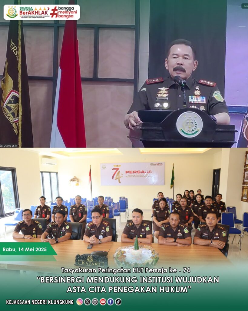 Kepala Kejaksaan Negeri Klungkung, Dr. LB Hamka, S.H., M.H., bersama para Kasi dan seluruh Jaksa mengikuti secara virtual kegiatan syukuran nasional yang digelar oleh PERSAJA.