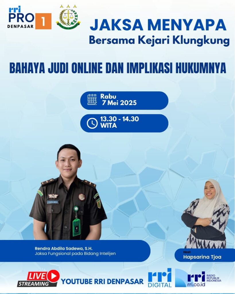 Kejari Klungkung dan RRI Denpasar Angkat Tema “Bahaya Judi Online” dalam Program “Jaksa Menyapa” Kejaksaan Negeri (Kejari) Klungkung bekerja sama […]