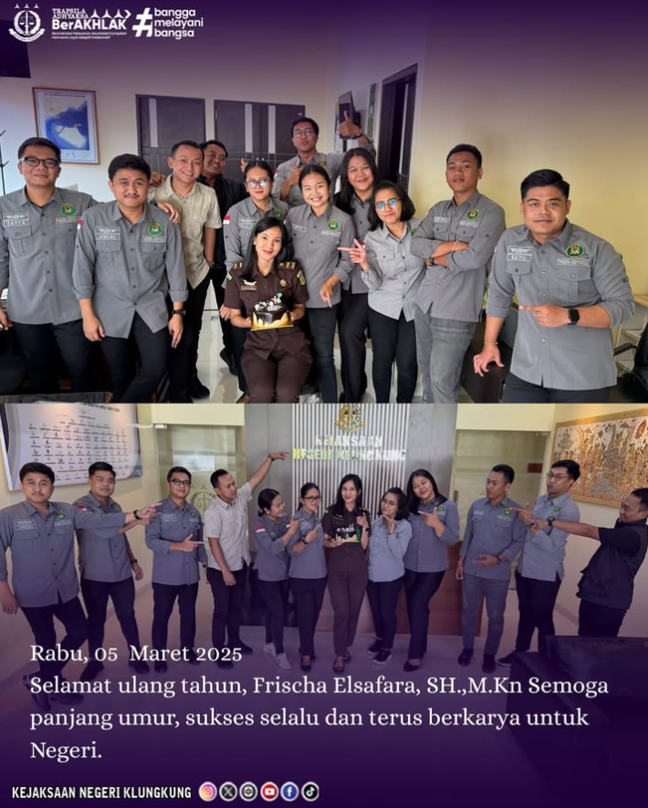 Kepala Kejaksaan Negeri Klungkung Beserta Jajaran mengucapkan Selamat ulang tahun, Frischa Elsafara, SH.,M.Kn Semoga panjang umur, sukses selalu dan terus