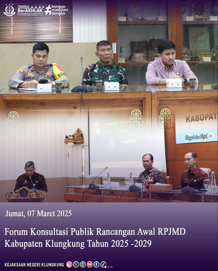 Jumat, 7 Maret 2025, Jaksa Fungsional Seksi Intelijen Kejaksaan Negeri Klungkung, Andreas Imanuel, S.H., menghadiri Forum Konsultasi Publik Rancangan Awal
