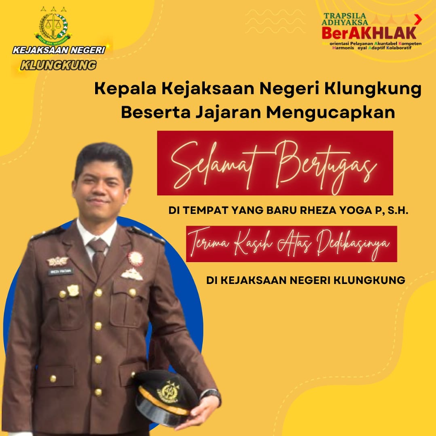 Kepala Kejaksaan Negeri Klungkung beserta jajaran mengucapkan Selamat Bertugas kepada Rheza Yoga P, S.H. @rhezayogap di tempat yang baru sebagai Kasubsi Intelijen