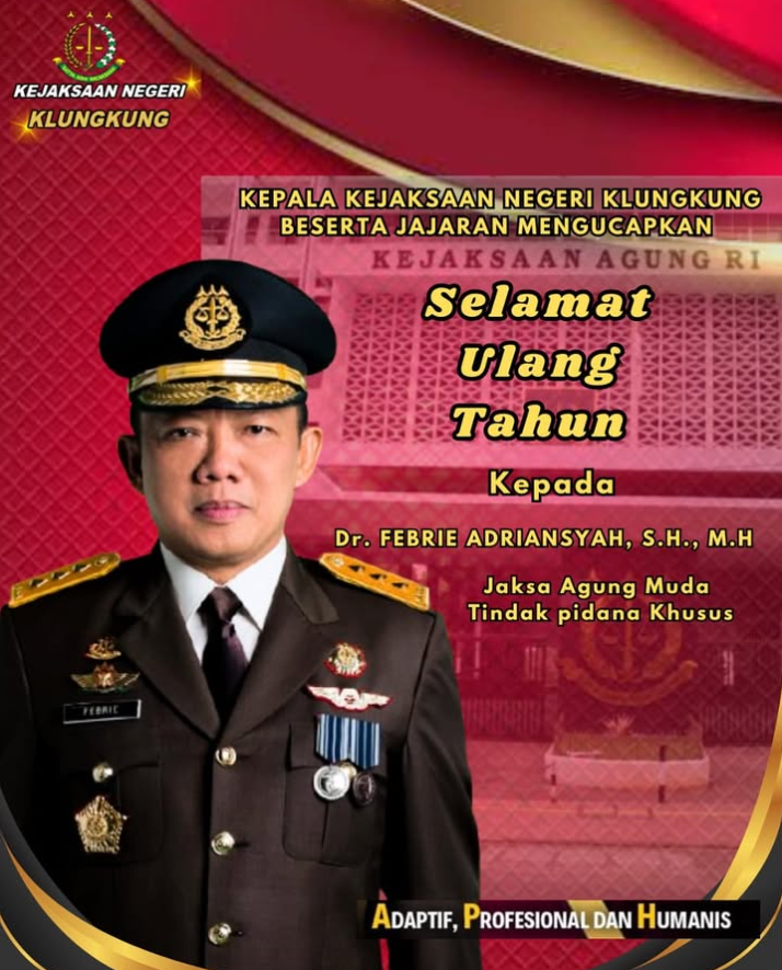 Kepala Kejaksaan Negeri Klungkung, Dr. L. B. Hamka, S.H., M.H., beserta Jajaran mengucapkan Selamat Ulang Tahun kepada Bapak DR. Febrie