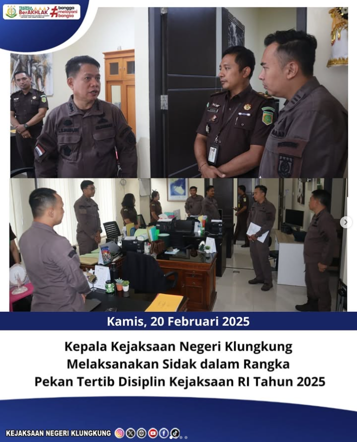 Klungkung, 20 Februari 2025 – Kepala Kejaksaan Negeri Klungkung, Dr. L.B Hamka, S.H., M.H., melakukan inspeksi mendadak (sidak) di lingkungan