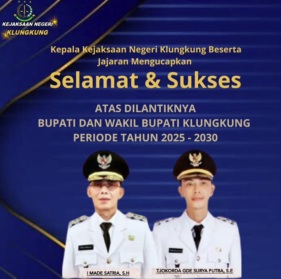 Kepala Kejaksaan Negeri Klungkung, Dr. L.B Hamka. S.H., M.H Beserta jajaran mengucapkan selamat dan sukses atas dilantiknya Bapak I Made