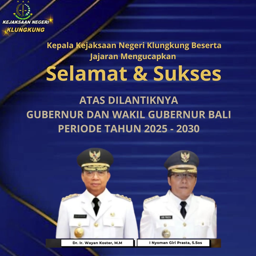 Selamat dan Sukses Atas Dilantiknya Gubernur dan Wakil Gubernur Bali periode 2025–2030.