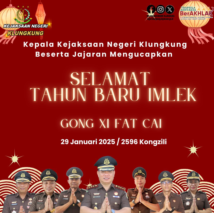 Kepala Kejaksaan Negeri Klungkung Dr. L.B Hamka, S.H., M.H Beserta Jajaran Mengucapkan Selamat Tahun Baru Imlek ” Gong Xi Fat