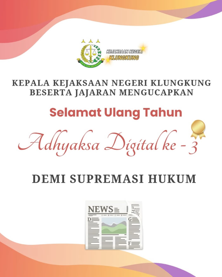 Kepala Kejaksaan Negeri Klungkung, Dr. L.B Hamka, S.H., M.H., beserta jajaran Mengucapkan Selamat Ulang Tahun Adhyaksa Digital ke-3Dengan Tema“Demi Supremasi