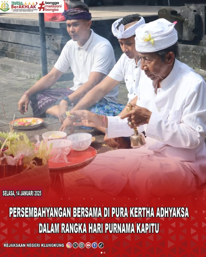 Selasa, 14 Januari 2025, bertempat di Pura Kertha Adhyaksa Kejaksaan Negeri Klungkung, seluruh Pegawai Kejaksaan Negeri Klungkung yang beragama Hindu