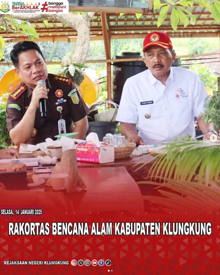 Selasa, 14 Januari 2025, Kepala Kejaksaan Negeri Klungkung menghadiri undangan “Rapat Koordinasi Terbatas Pembahasan Antisipasi Kondisi Cuaca Yang Telah dan