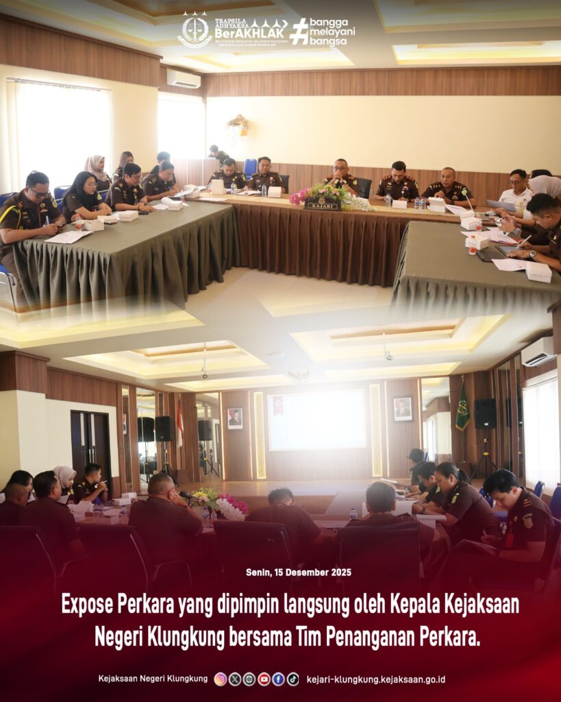 Bertempat di Aula Kejaksaan Negeri Klungkung Kepala Kejaksaan Negeri Klungkung, I Wayan Suardi, S.H., M.H., telah dilaksanakan kegiatan expose perkara yang dipimpin langsung oleh Kepala Kejaksaan Negeri Klungkung bersama Tim Penanganan Perkara.