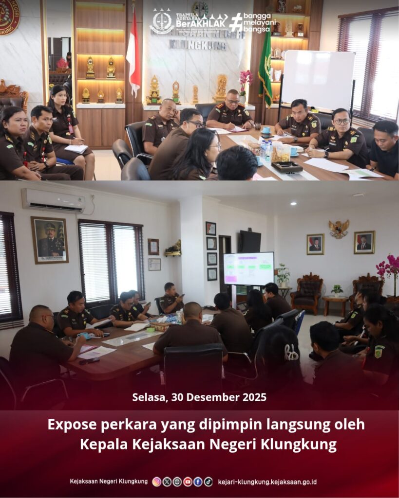 Bertempat di ruang Kerja Kepala Kejaksaan Negeri Klungkung, I Wayan Suardi, S.H., M.H., telah dilaksanakan kegiatan expose perkara yang dipimpin langsung oleh Kepala Kejaksaan Negeri Klungkung bersama Tim Penanganan Perkara.
