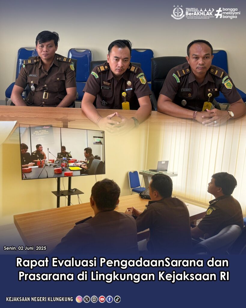 Kepala Sub Bagian Pembinaan Kejaksaan Negeri Klungkung, Julius Anthony, S.H., didampingi oleh para Kepala Urusan (Kaur) pada Bidang Pembinaan Kejari Klungkung, mengikuti kegiatan Rapat Evaluasi Pengadaan Sarana dan Prasarana di Lingkungan Kejaksaan RI.