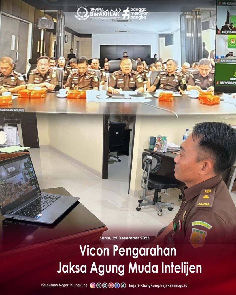 Kepala Seksi Intelijen Kejaksaan Negeri Klungkung, Ngurah Gede Bagus Jatikusuma, S.H., mengikuti kegiatan Video Conference (Vicon) Pengarahan Jaksa Agung Muda Intelijen yang dilaksanakan pada Senin, 29 Desember 2025.