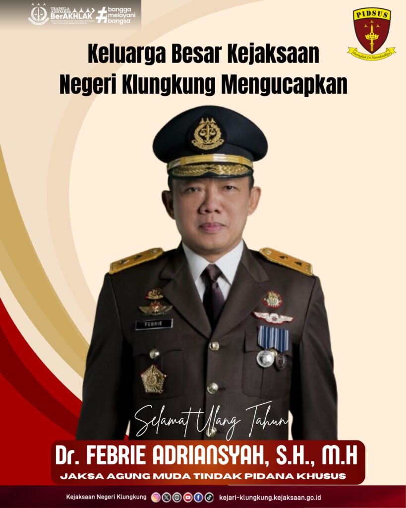 Semoga senantiasa diberikan kesehatan, kekuatan, dan keberkahan dalam menjalankan amanah serta pengabdian kepada bangsa dan negara. Semoga kepemimpinan yang visioner dan berintegritas terus membawa kemajuan bagi institusi Kejaksaan Republik Indonesia, khususnya dalam penegakan hukum yang profesional, transparan, dan berkeadilan.