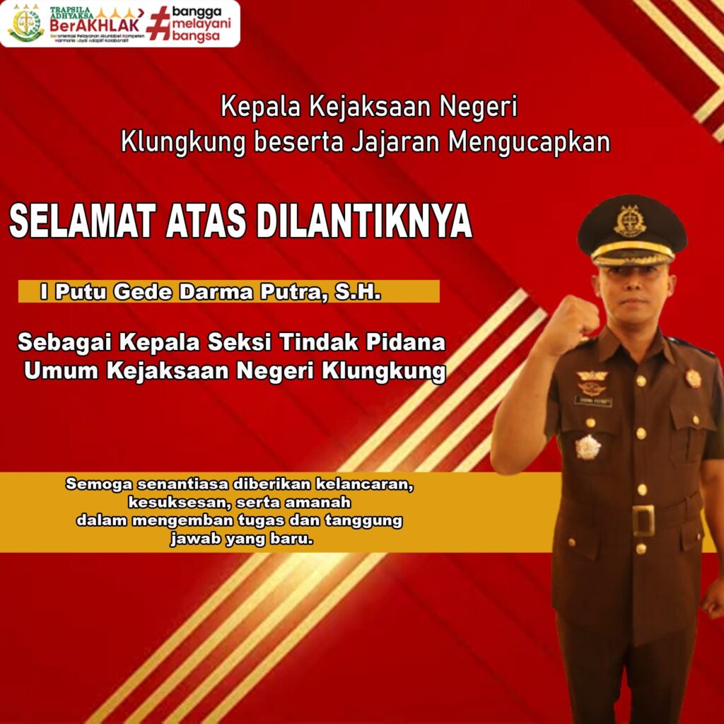 Kepala Kejaksaan Negeri Klungkung beserta jajaran mengucapkan selamat dan sukses kepada: