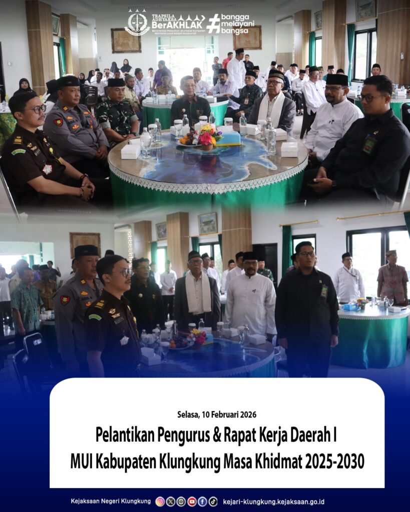 Pelantikan Pengurus dan Rapat Kerja Daerah I Majelis Ulama Indonesia (MUI) Kabupaten Klungkung Masa Khidmat2025–2030 yang dilaksanakan pada Selasa, 10 Februari 2026.