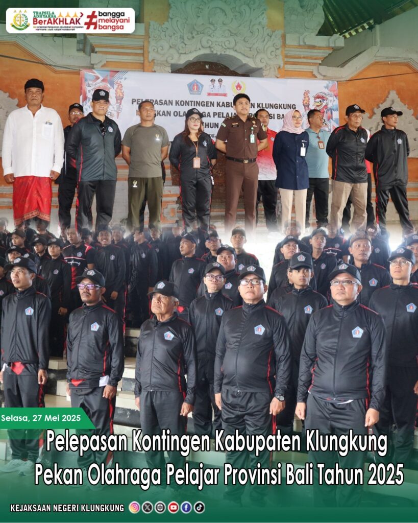 Kepala Kejaksaan Negeri Klungkung yang diwakili oleh Jaksa Fungsional Bidang Intelijen, Andreas Immanuel, S.H., turut hadir dalam acara pelepasan kontingen Kabupaten Klungkung menuju Pekan Olahraga Pelajar Provinsi Bali Tahun 2025.