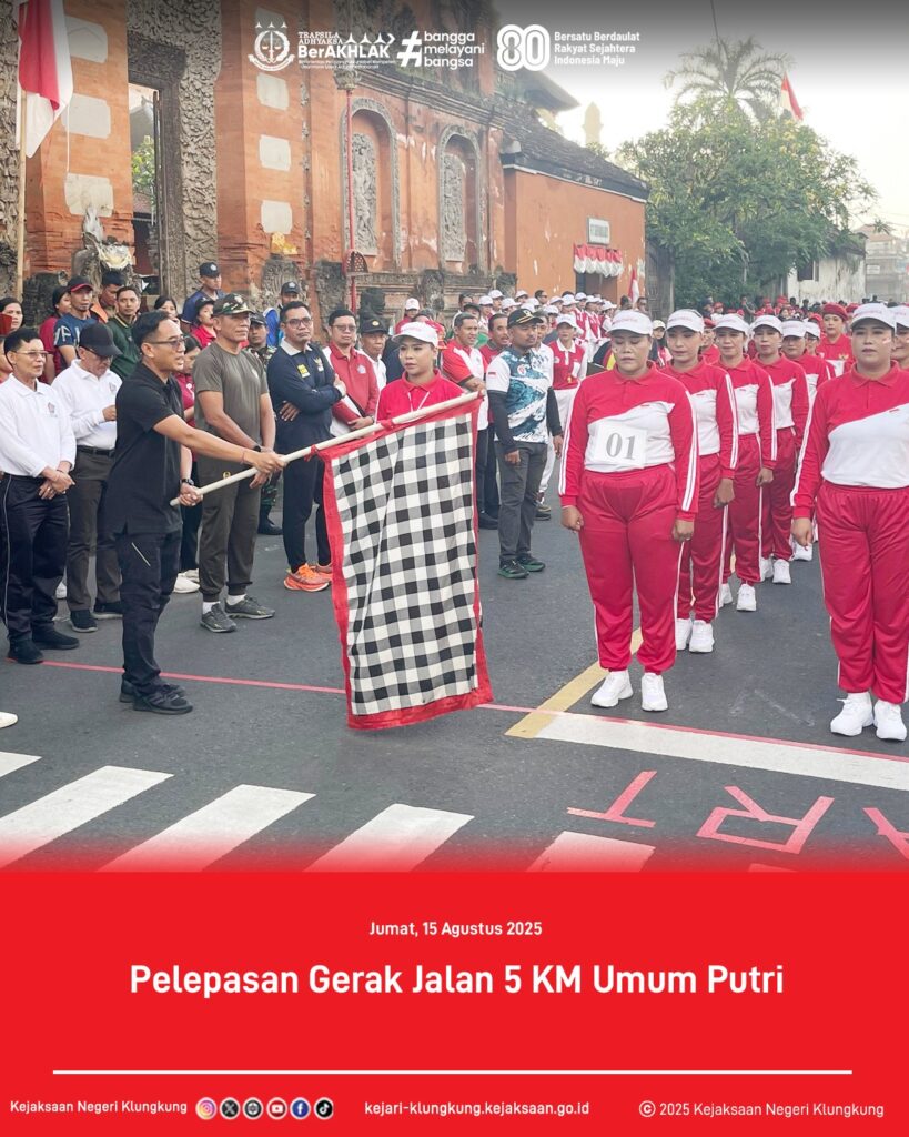 Kepala Seksi Perdata Dan Tata Usaha Negara I Dewa Nyoman Wira Adiputra, SH., MH., menghadiri sekaligus melepas peserta Gerak Jalan 5 KM Umum Putri di Kabupaten Klungkung, Jumat (15/8/2025).
