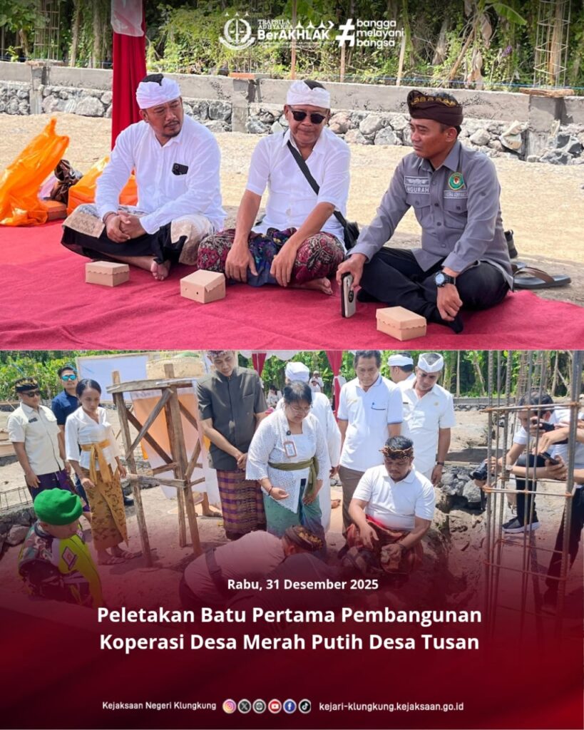 Kepala Seksi Intelijen Kejaksaan Negeri Klungkung, Ngurah Gede Bagus Jatikusuma, S.H., menghadiri kegiatan Peletakan Batu Pertama Pembangunan Koperasi Desa Merah Putih Desa Tusan sebagai bentuk dukungan terhadap penguatan ekonomi desa dan pemberdayaan masyarakat.