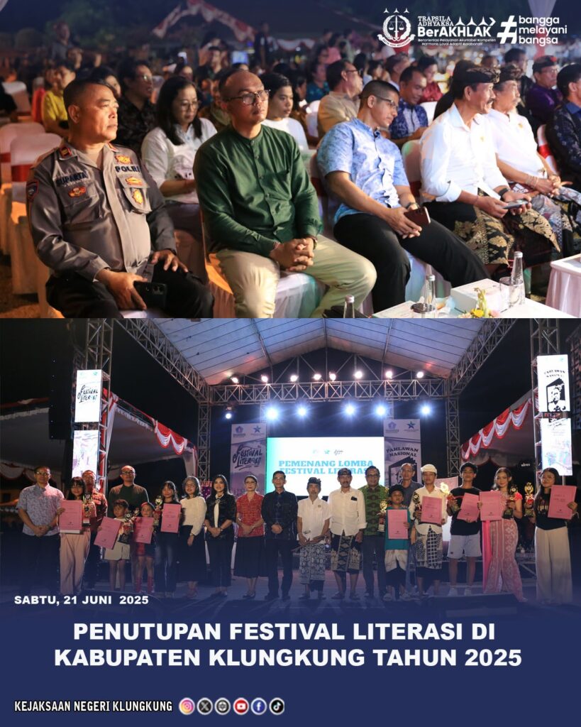 Sabtu, 21 Juni 2025 Bertempat di Alun-Alun Kota Ida Dewa Agung Jambe, Lingkungan Pekandelan, Kelurahan Semarapura Klod, Kec./ Kab. Klungkung, Kejaksaan Negeri Klungkung turut ambil bagian dalam penutupan Festival Literasi Kabupaten Klungkung tahun 2025, yang berlangsung penuh semangat dan antusiasme literasi!