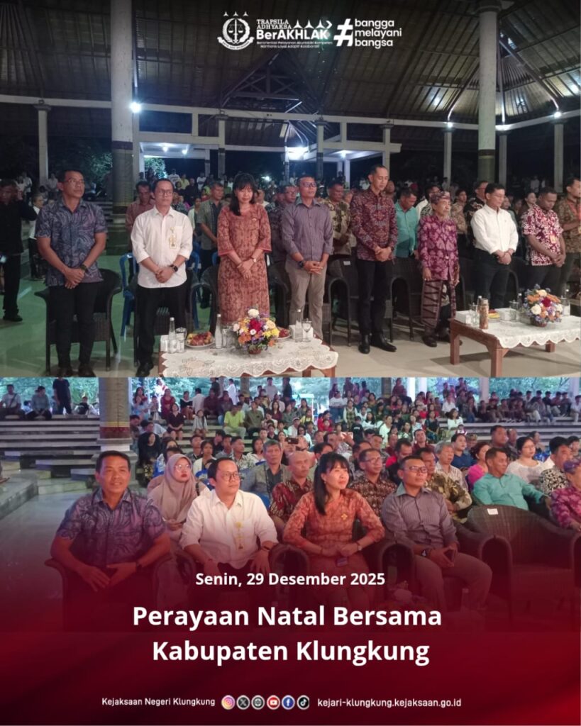 Senin, 29 Desember 2025 – Bertempat di Balai Budaya Kabupaten Klungkung Kepala Seksi Pemulihan Aset dan Pengelolaan Barang Bukti serta Barang Rampasan, Mustabihul Amri, S.H., hadir dalam Perayaan Natal Bersama Kabupaten Klungkung yang digelar dengan penuh kebahagiaan dan kehangatan kebersamaan.