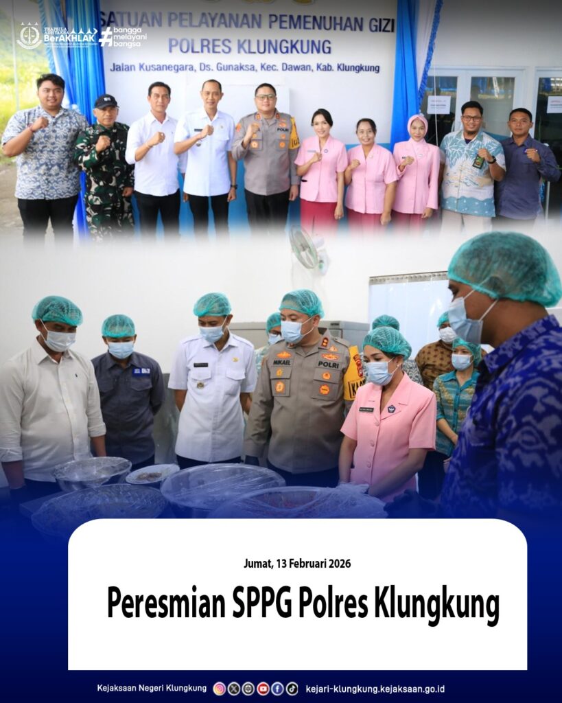 Kepala Seksi Tindak Pidana Umum Kejaksaan Negeri Klungkung, I Putu Gede Darma Putra, S.H., menghadiri kegiatan Peresmian Satuan Pelayanan Pemenuhan Gizi (SPPG) Polres Klungkung pada Jumat, 13 Februari 2026.