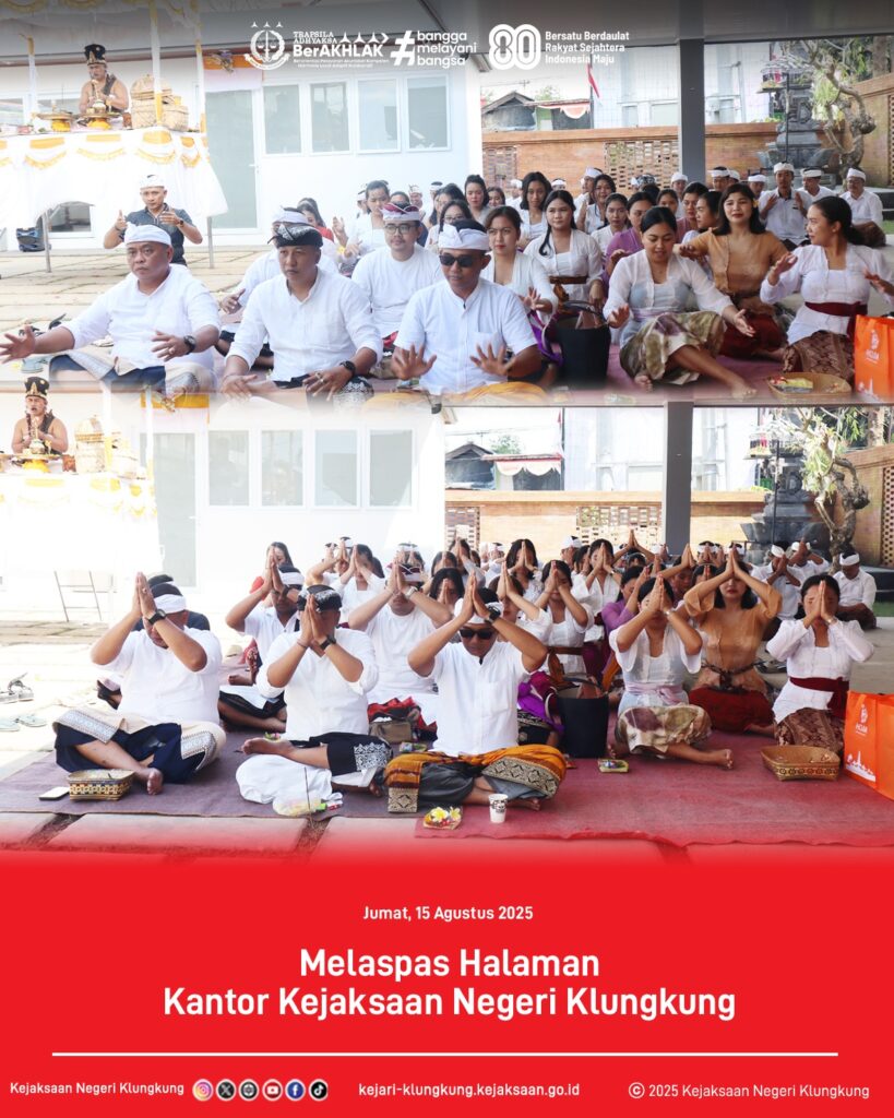 Jumat, 15 Agustus 2025, Seluruh Pegawai Kejaksaan Negeri Klungkung yang beragama Hindu telah melaksanakan Persembahyangan Melaspas Halaman Kantor Kejaksaan Negeri Klungkung