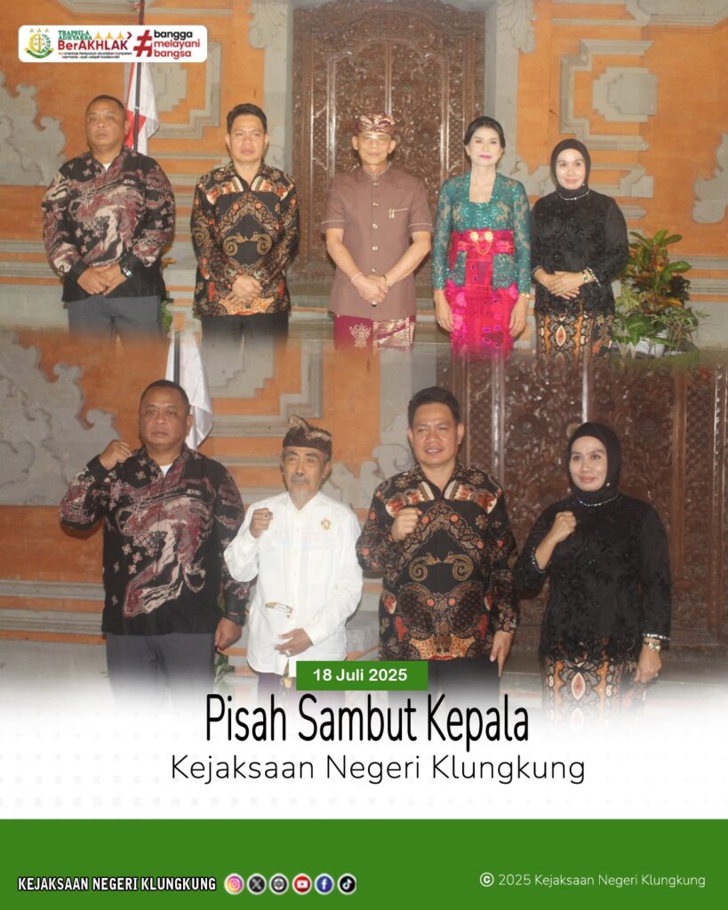 Jumat, 18 Juli 2025, Bertempat di Balai Budaya Klungkung telah dilaksanakan kegiatan Pisah Sambut pada Kejaksaan Negeri Klungkung yang sebelumnya di jabat oleh Dr. LB Hamka, SH., MH kini dijabat oleh I Wayan Suardi SH MH. Kegiatan ini merupakan bagian dari upaya penataan organisasi serta penyegaran pejabat struktural dalam rangka peningkatan kinerja Kejaksaan Negeri Klungkung