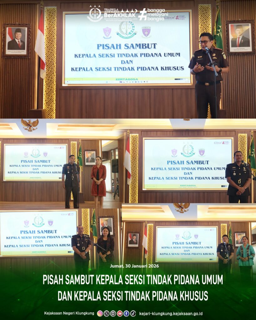 Kepala Kejaksaan Negeri Klungkung, R. Indra Senjaya, S.H., M.H., didampingi oleh para Kepala Seksi serta seluruh pegawai Kejaksaan Negeri Klungkung, melaksanakan kegiatan Pisah Sambut Pejabat sebagai bagian dari rangkaian Pelantikan dan Serah Terima Jabatan.