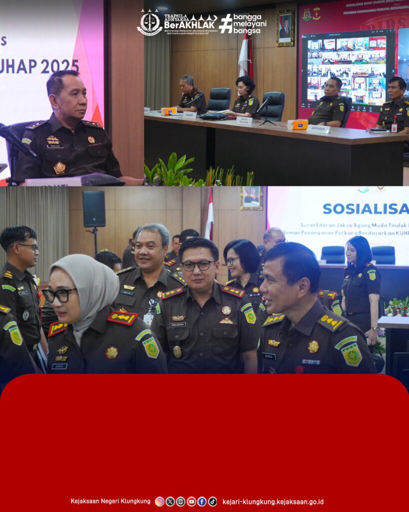 Kepala Kejaksaan Negeri Klungkung, R. Indra Senjaya, S.H., M.H. Menghadiri Sosialisasi Surat Edaran Jaksa Agung Muda Tindak Pidana Khusus tentang Pedoman Penanganan Perkara berdasarkan KUHP 2023 dan KUHAP 2025 yang diselenggarakan oleh Kejaksaan Tinggi Bali.
