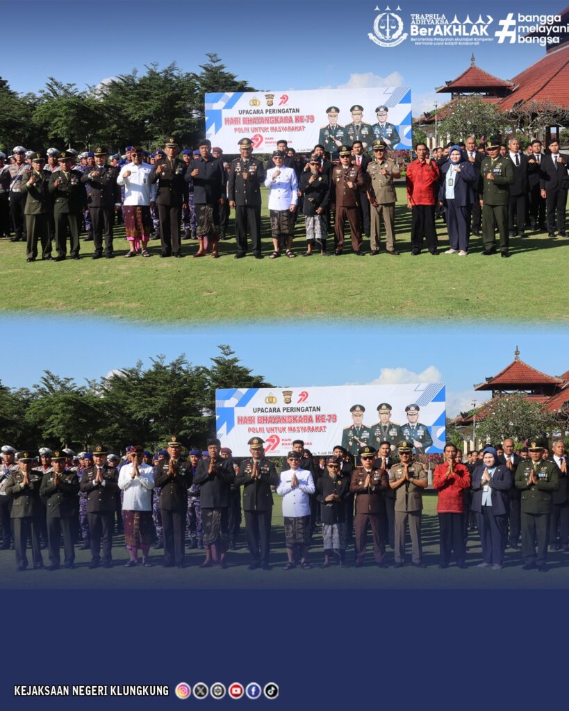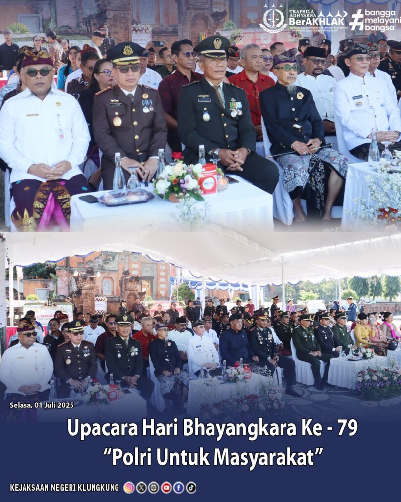 Bertempat di Alun-Alun Kota Semarapura, Kepala Kejaksaan Negeri Klungkung Dr. L.B Hamka, S.H., M.H., bersama satu barisan perwakilan dari Kejaksaan Negeri Klungkung menghadiri Upacara Peringatan Hari Bhayangkara ke-79 yang mengusung tema “Polri untuk Masyarakat”.